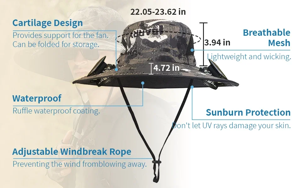 Upgrade your outdoor gear with the Men’s Solar Fan Hat with UPF50+ Protection.